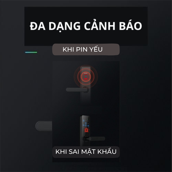Kaadas M5 sẽ phát ra cảnh báo khi pin yếu hoặc nhập sai mật khẩu.